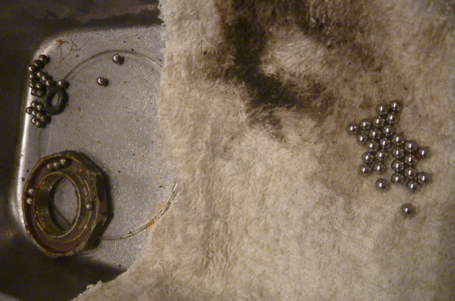 ついでにステムベアリング。古い車両はチェック(グリスアップ)しておきたい所。