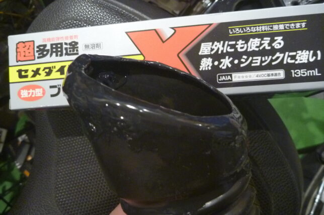 割れ等劣化してきたら、新品に交換するのが一番いいのかもしれませんが、色々な事情で新品に交換できない場合、簡易補修します。見栄えがそれほど気にならない部分には最近コレ⇩を使用。