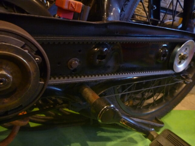 ベルトが当たらなそうな位置に、ウィーンと穴を開けて、取り付け。