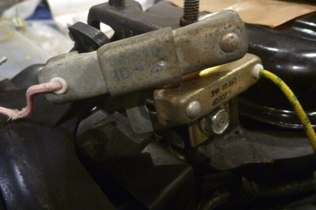 レギュレーターレクチファイアと抵抗。最初から12Vは12Vなのですが、ちょっと気になる。過渡期だったからか、コスト的な事なのかわかりませんが。