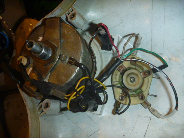 ガソリンタンクを外した下の方にある部分⇩。後ウインカーの配線・端子を確認。