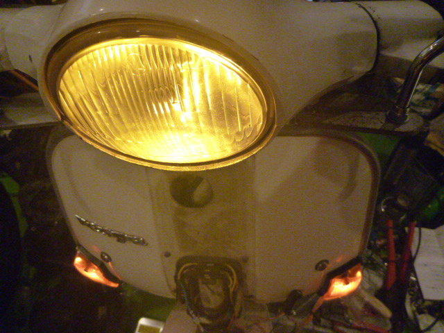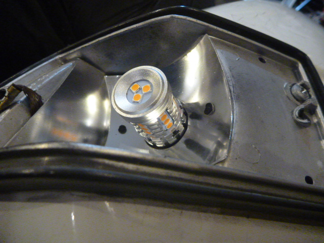 これ⇩(車のハイフラ防止抵抗入りLED灯)は、このベスパには消費電力量が多すぎたかもしれない。