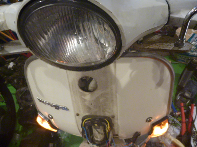 カバーを閉じたり、また開けたり、部品を付けたり、外したりを繰り返しておりますベスパP。