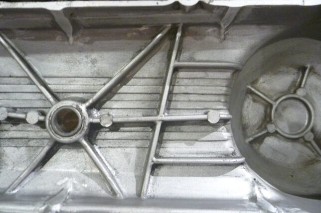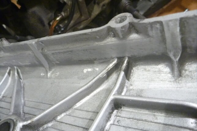 最初に開けた時は、内側はカスでまっ黒。その時ここ(カバー)のガスケットは破けたので、剥がしてそのままフタしてます。最初は作ろうと思いましたが、オイルが入っている部分ではありませんし、そのまま。全部剥がさないと隙間ができたりしますので、締め付けが不均一になったり、雨が滲みたりの水侵入は注意が必要かもしれません。