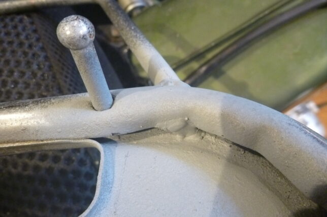 今回追加した棒は、Rキャリア本体に穴を開けて差し込んでから溶接しています。この部分(追加部分)には、荷物を積んだとしてもそれほど重量はかからない予定。必要であれば補強を追加しましょう。