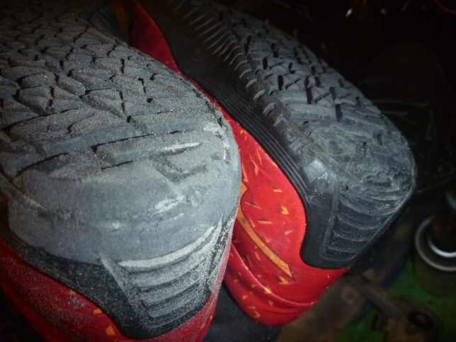 もともと丸みを帯びている種類の靴もブロック欠けしていたので、少し削って慣らしてみる。