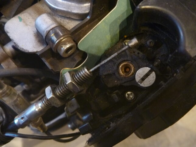 スロットルレバー・ワイヤーを給油・位置の印をしてから分解