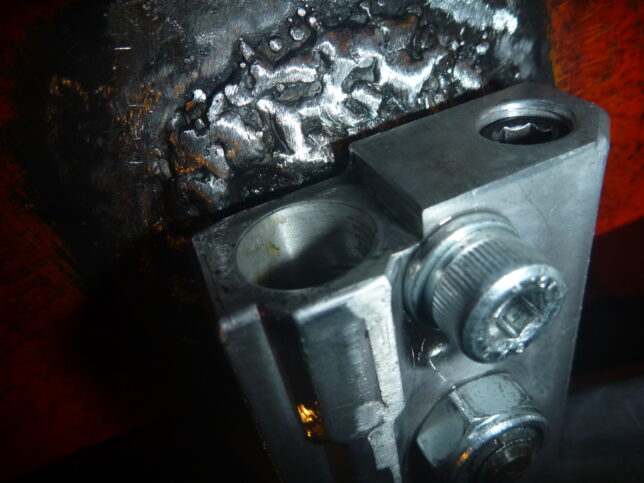 台車を立てて作業すると、あまりオイルが抜けない(無駄にならない)事に気づきましたので、作業時は立てて外し・交換作業しておりました。溶接時もオイルを抜かずに作業。