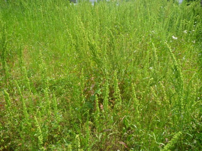 端の方の長い草は、身長を上回って2m以上あります。今はこの草。