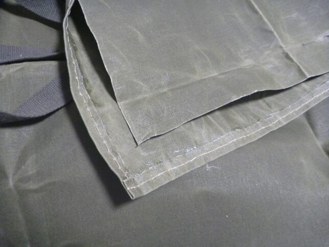 ネットを徘徊していた時に、なにやらワークマンで良さそうなグランドシートを売っているのを発見しておりました。パラフィン帆布ロングフィールドシート(オリーブ)これは長方形。他に少し小さいサイズ(パラフィン帆布フィールドシート)というのもあり。おしい。畳んで付ける事も少し検討。