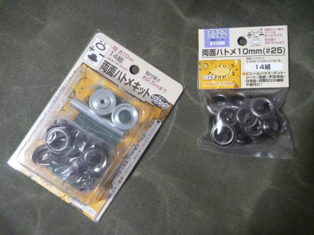 そしてゴム紐を掛ける用にハトメ付け。こだわりの「ブラックニッケル」をセレクト。(たまたま発見したので)