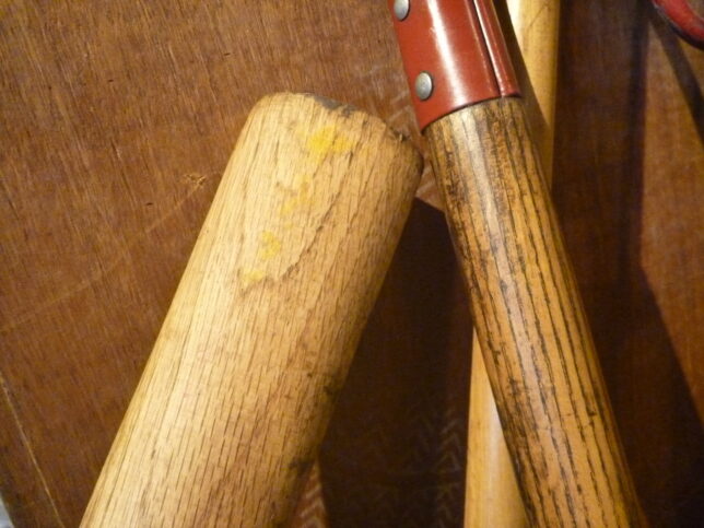 完成した蜜蝋ワックスは、無垢材の柄などにも塗りこみ。