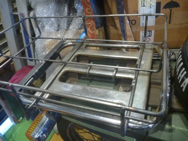 タウンメイト同様、箱を積めるサイズでイってます。箱を積まない場合でも、買い物バッグなどを固定しやすい。ただ、2人乗りするとなったらどうしましょ?ここに正座するか、外してピリオンシートを付けるか。2人乗りはしないか。