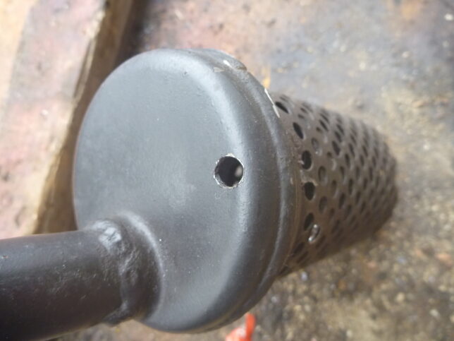サイレンサー内に溜まった液体が、効率よく、すべて抜けるようにするには他にも手を入れねばなので、今回そこまではやらない。