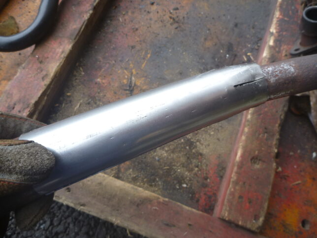 鉄板をテーパー状に丸めて、腐食部分を切って継ぐのが本来のやり方かもしれません。