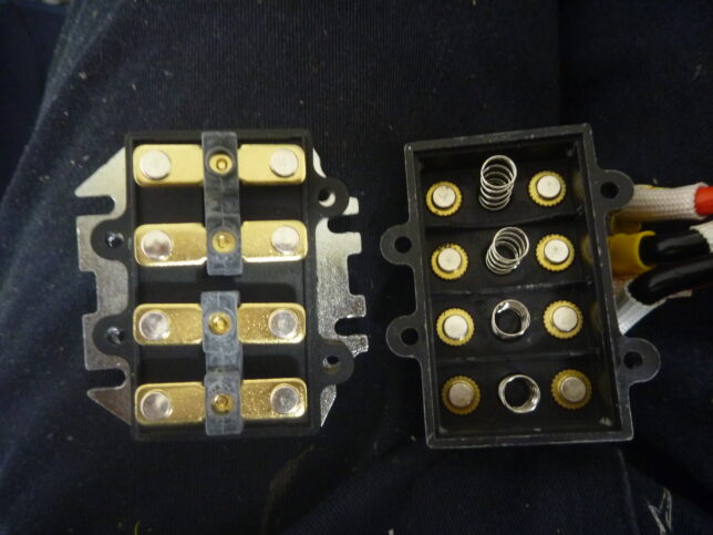 バネは強めに効いています。組み直す自信が無い方はココ⇩までバラさない方がいいかもしれません。バネを一本無くしかけました。12VがバチバチとON/OFFする構造・箇所であります。