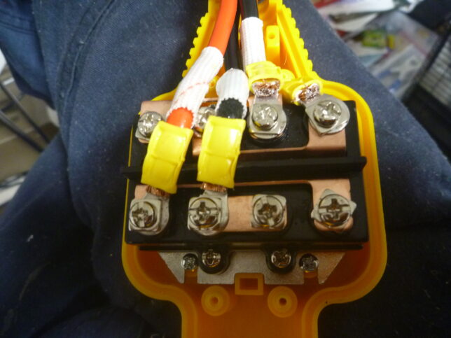 リモコンはいいとして、そういえば繋いでモーター(ワイヤー)が動かなかったら困るなと、バッテリーをつないで動作チェックしてみる事にしました。配線は伸ばしてから使用しましょう。今回は少し動かすだけ・まだ初期不良の可能性があるので、そのままの状態でテストしています。