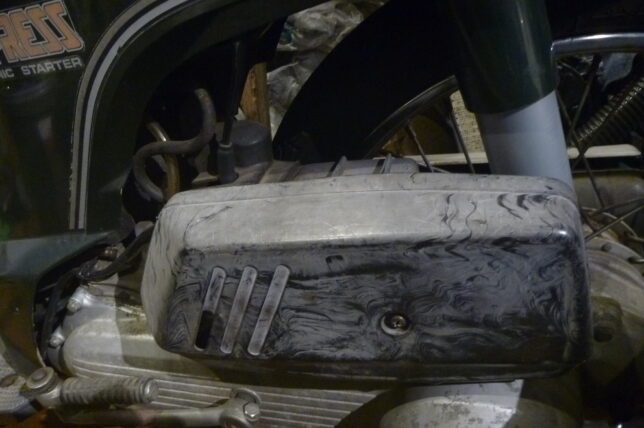 錆びたガソリンタンク ガソリンタンクの錆取りをしていたら、一番星発見。作業ストップしました。予備もあるけど…