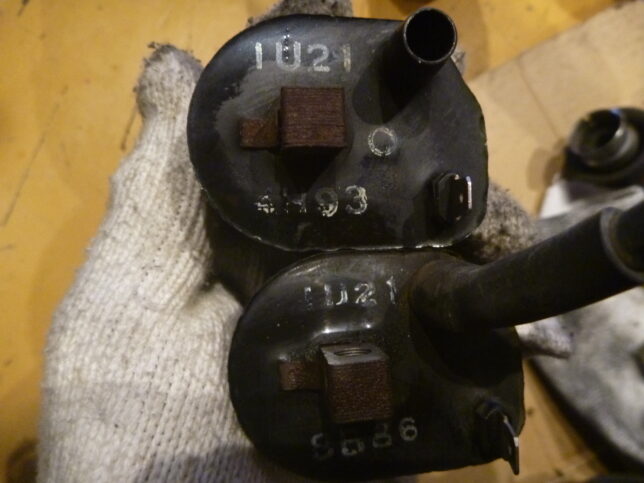 そこで何をやったか先に言いますと、KSR80のイグニッションコイル(中古)のお試しです。⇧写真左KSR2。右KS2。