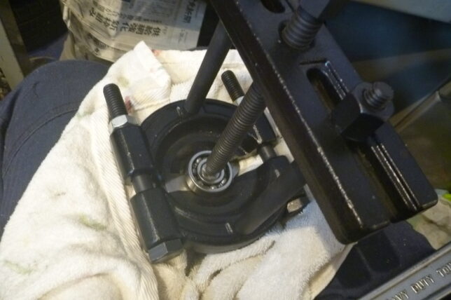 こんな所は、挟み込むタイプのベアリングプーラー。ギヤプーラー?