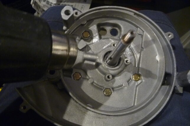 クランクケースをボルト締めしてから、また両側(ベアリング周辺)を外側から熱しております。