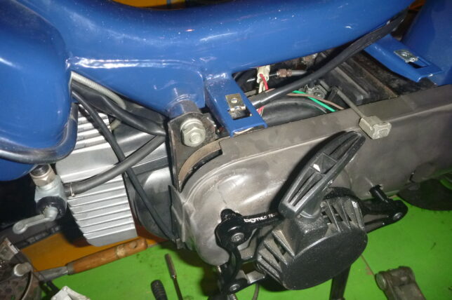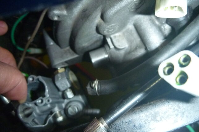 エンジン下側のカバーを外した状態だと、キャブレターなどを下側から出し入れできる。