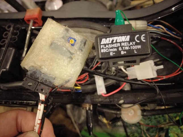 チャオのホーンが勝手に鳴る エンジン始動していると、ホーンが勝手にビィビィ言い始めたので原因究明。