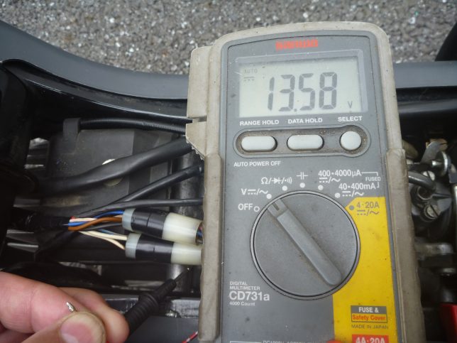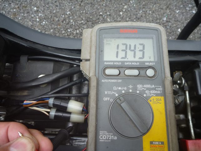 あらためてアイドリングで電圧を測ってみたら13V以上でている。