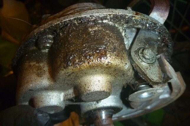 リヤのギヤボックス/ブレーキドラム、オイル漏れすぎ⇩。