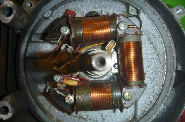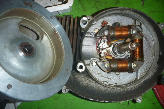 フライホイールを外してポイント点検/調整できる方式はラク。