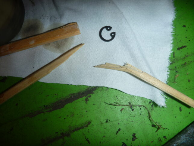 一線を退いた歯ブラシや、もらって使用しなかった割りばしなどを使ってカーボン除去。割りばしは折ったり削ったりして先端を細くして使用。