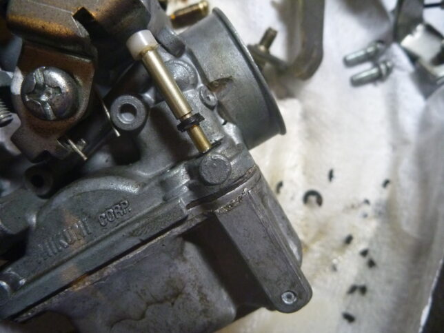 キャブレターは、カラカラになったパッキンが固着。この紙?パッキン、漏れなくていいのかもしれませんが、なんだかケイヒン(京浜)のキャブと勝手がちがうなあ。